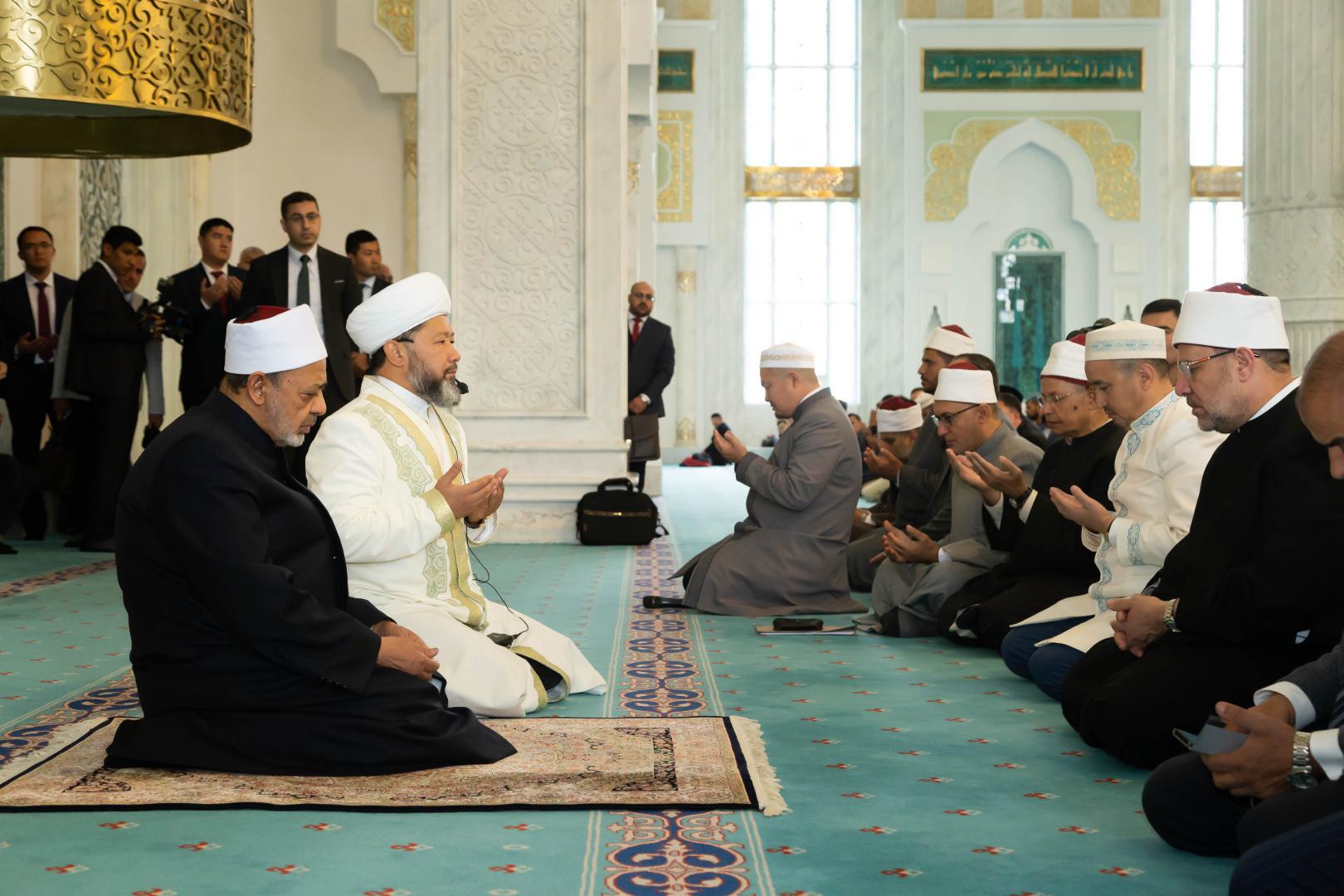 Musylman áleminiń áıgili din ǵulamalary ilim alǵan, talaı dindarlar túlep ushqan ál-Azhar ýnıversıtetiniń sheıhy, Joǵarǵy mártebeli ımam Ahmad at-Taıeb keshe elordadaǵy Áziret Sultan meshitine baryp, besin namazyna qatysty.