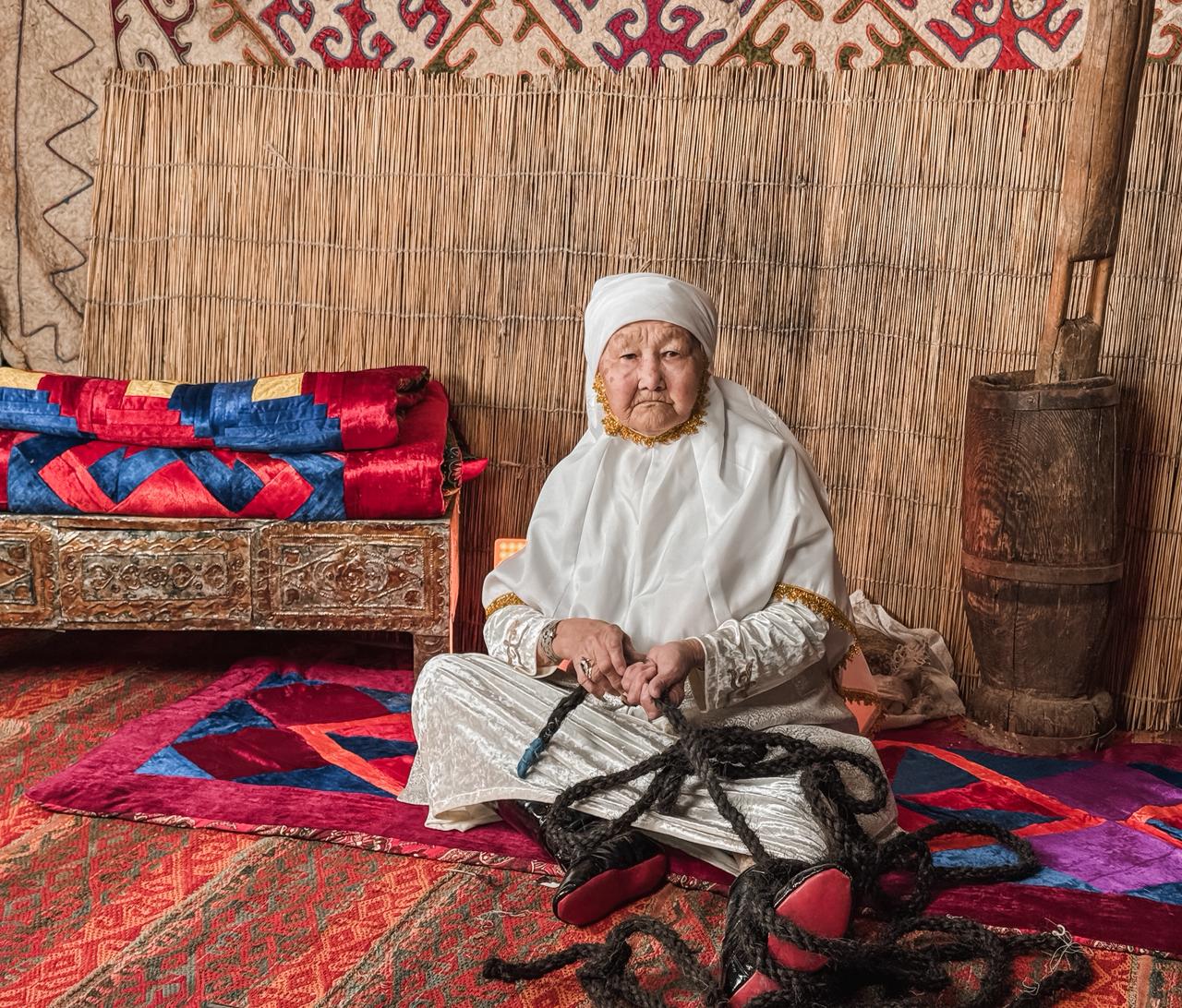 – Buryn kúndelikti mal sharýashylyǵyna qajet bolǵandyqtan, jylqynyń jaly men quıryq qylynan jip esip ala beretinbiz. Ony biraq kez kelgen sharýaǵa qoldanbaıdy, kóbine at ábzelderine paıdalanady. Qylǵa qoıdyń nemese túıeniń júnin qosyp, atqa noqta, shylbyr jasaǵan, túıeniń buıdasyna paıdalanǵan, arqan-jip esken. Negizinen qyl shylbyr ustaý – er-azamat úshin úlken mártebe bolǵan. Buryn úlkenderimiz atpen jolǵa shyqqan jolaýshyny qyl shylbyry bále-jaladan qorǵaıdy dep aıtatyn. Dalaǵa túnegende adam ózin aınaldyra qyl shylbyrmen qorshap tastasa, jylan, t.b jándikter jolamaıdy deıtin, – deıdi qart ana.
