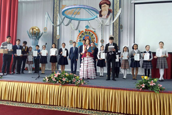 Jyr alyby Jambyl Jabaevtyń esimimen atalatyn bilim oshaǵynda turaqty túrde aqyndar aıtysyn ótkizip turý bul mekteptiń dástúrine aınalǵan desek te bolady. Osy joly da mekteptiń túlegi Syrym Áýeshan sekildi birneshe respýblıkalyq aqyndar aıtysynyń júldegerleri men oqýshylardan quralǵan aqyndardyń 4 juby óner kórsetti. Shara sońy Marjan Arapbaeva bastaǵan estrada juldyzdarynyń oryndaýyndaǵy konserttik baǵdarlamamen jalǵasyn tapty.