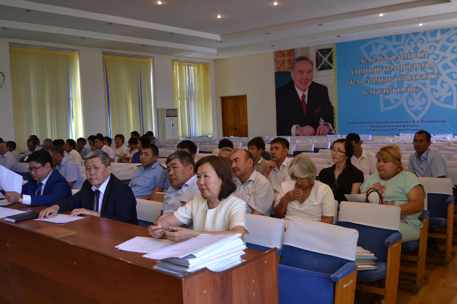Жиынға облыс әкімінің орынбасары  Е.Садыр,  облыстық жұмыспен қамтуды үйлестіру және әлеуметтік бағдарламалар басқармасының басшысы М.Отаршиев, Сайрам ауданының әкімі С.Сапарбаев және ауыл окургі әкімдері, тиісті салалық бөлім басшыларының қатысты.