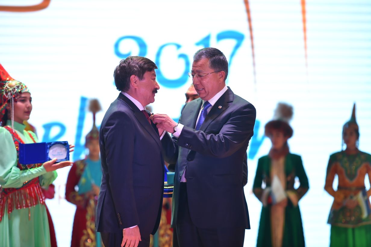 Бұдан соң аймақ басшысы ҚР Мәдениет және спорт министрі Арыстанбек Мұхамедиұлы мен «ТҮРКСОЙ» Халықаралық ұйымының Бас хатшысы Қасейінов Дүйсен Құрабайұлына алғыс білдіріп, марапаттаса, Түркия Республикасы Мәдениет және туризм вице министрі Хусейн Яйман мырзаға Қазақстан-Түркия достығы мен ынтымақтастығын дамытқаны үшін төсбелгі тақты. Ал қалған түркі елдерінен келген қонақтарға облыс әкімінің арнайы сыйлығы тапсырылды.