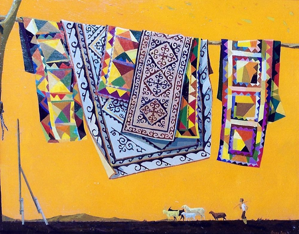 Бояуларға әмірін жүргізе алатын суретші өзінің шеберлігін ұлттық қолөнерді әспеттеумен бекемдей түсетінін мойындау ләзім. Сонау «Баянауыл аңыздарынан» бастап, «Қалыңдық жасауы», «Кеш» сияқты картиналар суреткердің ғана емес, ұлттық бейнелеу өнерінің ортақ байлығы емес пе?! Текемет, құрақ-көрпелер мен басқұрлар мың құбылған түстерден ғана тұрмайды. Бұл суреттерде өткен күннің белгілері, символикалық нышандар, петроглифтер сөйлейді.