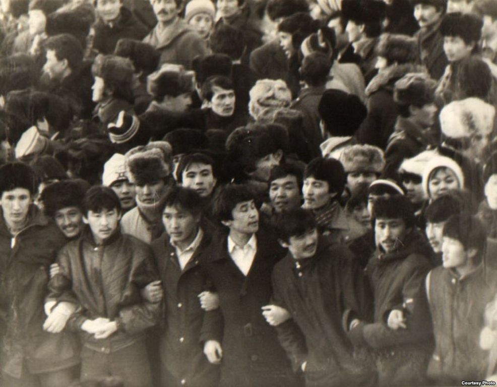 Иә, қанды оқиға орын алған Алматының сол кездегі Жаңа алаңы. Суретте наразылық танытуға жиналған студенттердің бейбіт бейнесі. Шеп құрып, талап білдіріп тұрған жастардың үлкен шоғыры дәл осы күні кешқұрымда алаң алай-дүлей болып, қарулы әскердің шабуылына ұшырайтынын білмеген еді. «Метель» операциясының басталуына санаулы сағаттар қалған болатын...