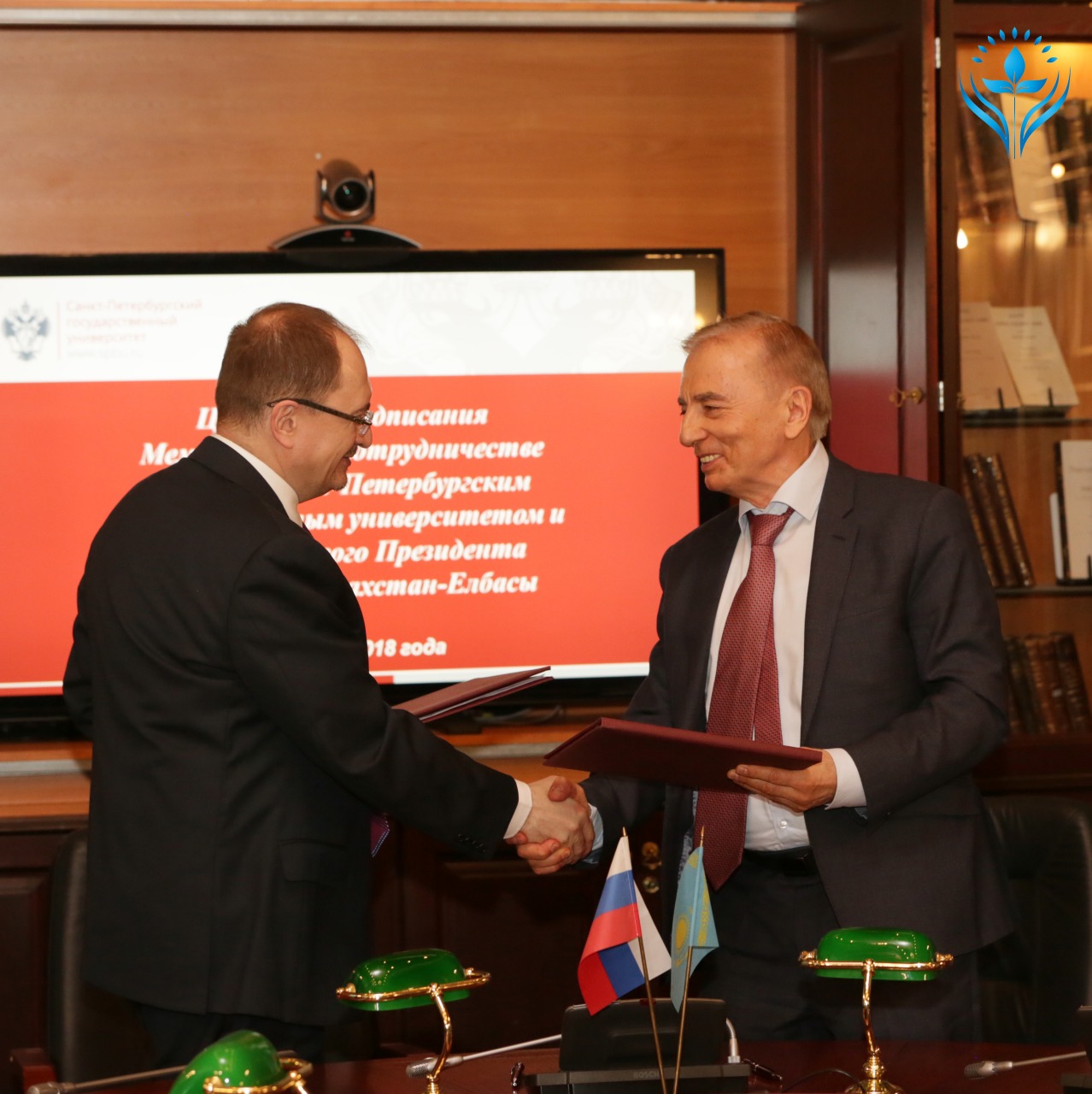 Меморандумға қол қоюға Қазақстан Республикасының Санкт-Петербург қаласындағы Бас Консулы Болат Иманбаев, ҚР Тұңғыш Президенті - Елбасы Қорының атқарушы директорының орынбасары Игорь Рогов және Санкт-Петербург Мемлекеттік Университетінің ректоры Николай Кропачев қатысты.