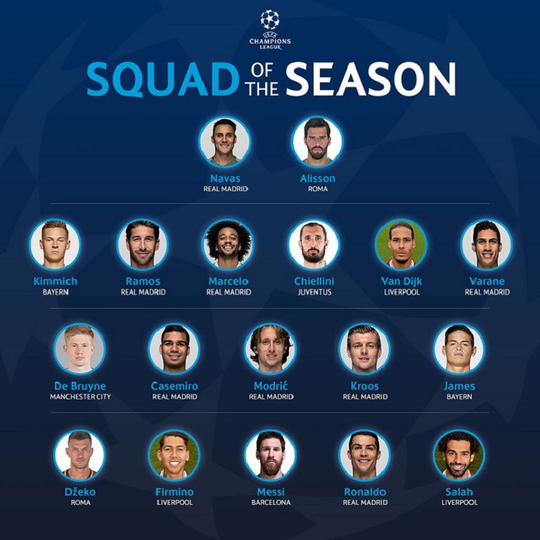 Шабуылшылар: Эдин Джеко («Рома»), Роберто Фирмино, Мохамед Салах (екеуі де – «Ливерпуль»), Лионель Месси («Барселона»), Криштиану Роналду («Реал»).
