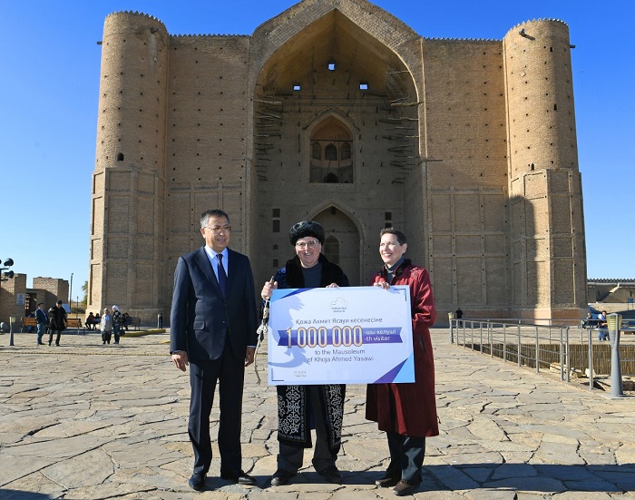 Облыс әкімі Түркістанға келген миллионыншы қонақтарға ұлттық шапан кигізіп, қамшы, тайқазан сыйлады. Сондай-ақ, Түркістан өңірінде туризм әлеуетін арттыру үшін артқарылып жатқан жұмыстармен таныстырды.