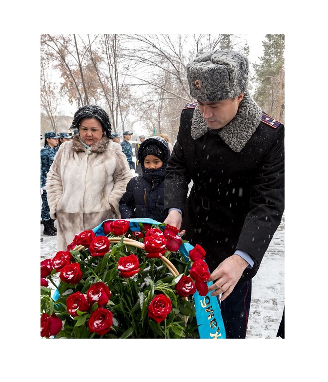 Қапияда қаза тапқан бейбіт күннің батырлары рухына арнап Арман Оразалиев бастаған жамбылдық полицейлер Ғазиз Байтасовтың бюстіне гүл шоқтарын қойды. Ерлік елдікпен бірге мәңгі жасай беретінін еске салды.
