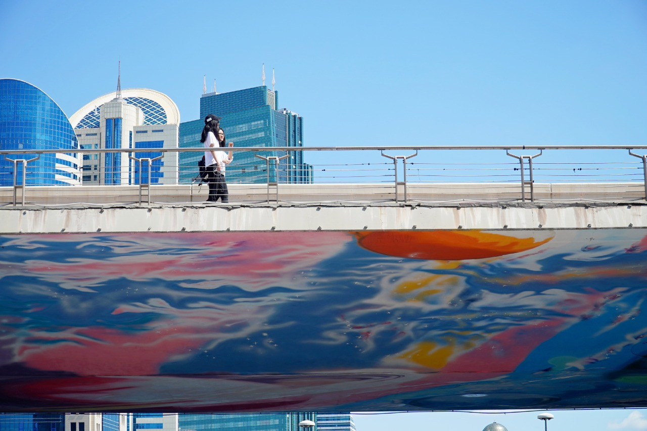 "Ғарыш ортасы" муралы. Осы жазда елордадағы Қабанбай батыр даңғылында Дөңгелек алаңның көпір бөлігінде пайда болды. Жұмбақ ғалам, зерттелмеген планеталар мен ғарыштық денелер бұл жерге ерекше атмосфера сыйлайды.