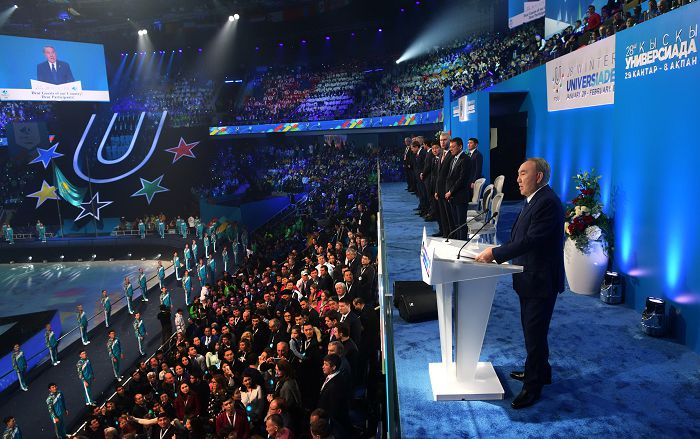 Қазақ елінде тұңғыш рет табан тіреген студенттердің қысқы спорт ойындарына Елбасы – Қазақстанның Тұңғыш Президенті Нұрсұлтан Назарбаев, шетелдік меймандар қатысты. Өткен жылы ғана пайдалануға берілген әсем де сәнді спорт кешенінің 12 мың адамдық үлкен аренасында ине шаншар орын қалмады. Қазақстан Универсиадасы тарихында тұңғыш рет әлемдік рекорд жасап, дүние жүзінің 57 елінен спортшы қабылдады. Тікелей таратылған телехабарға әлемнің 80 елі көз тікті, көрермен аудиториясы 1 миллиардтан асты.