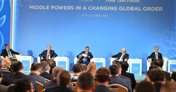 Jalpy, 16-17 qazan kúnderi Astana halyqaralyq forýmy aıasynda «Qubylmaly jahandyq tártiptegi orta derjavalar: qaýipsizdikti, turaqtylyqty jáne ornyqty damýdy nyǵaıtý» taqyrybyna arnalǵan alǵashqy Astana Think Tank Forum-2024 forýmy ótti. Is-sharany Prezıdent janyndaǵy Qazaqstan strategııalyq zertteýler ınstıtýty uıymdastyrdy. Eki kúnge jalǵasqan forýmda halyqaralyq sarapshylar Atlant muhıtynan Tynyq muhıtyna deıingi keńistiktegi ózara is-qımyldyń geosaıası, ekonomıkalyq jáne strategııalyq aspektilerine nazar aýdardy.