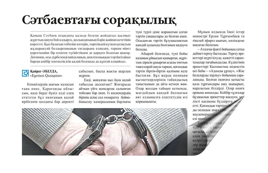 Qaraǵandy oblysynyń aýmaǵynda bolǵan qylmystyq oqıǵalarǵa qatysty eki jańalyq ótken aptada eldi kádimgideı eleń etkizdi. Onyń biri – Sátbaev qalasynda bes jastaǵy qyz balany zorlaǵan degen kúdikke ilingen erkeksymaq kenshiler astanasyndaǵy tergeý ızolıatorynda asylyp ólgen eken. Bul týrasynda oblystyq qylmystyq-atqarý júıesi departamenti resmı túrde habarlady.