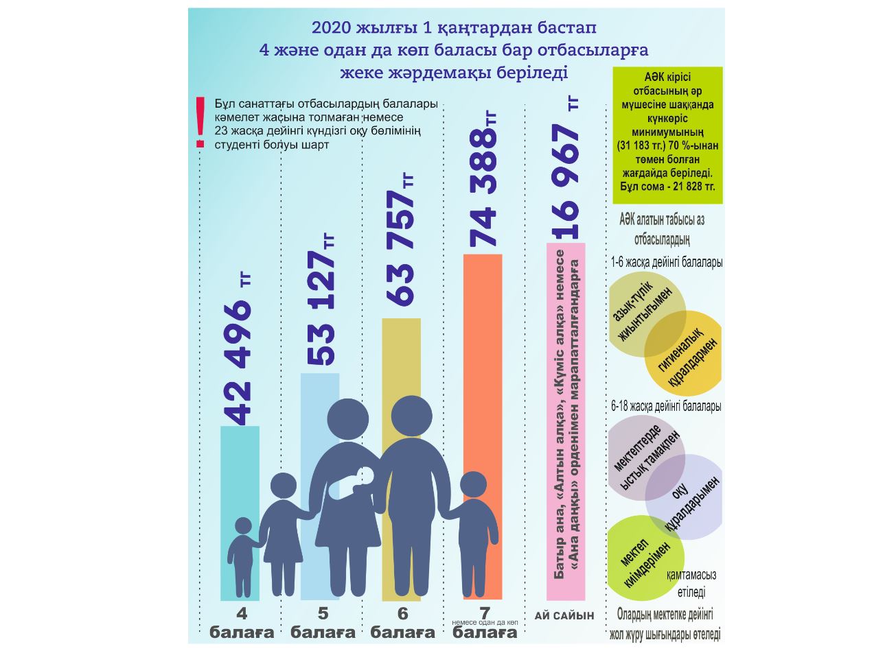 Мемлекет басшысы Қасым-Жомарт Тоқаев халыққа Жолдауында АӘК алу жүйесін ашық, әділ және ең бастысы еңбекке жұмылдыруға ықпал ететін жүйеде құруды тапсырған болатын. Сонымен бірге аз қамтылған отбасылардың балаларына арналған кепілдендірілген әлеуметтік пакет енгізуді де жүктеді. Осыған орай Парламент депутаттары атаулы әлеуметтік көмекті тағайындаудың жаңа ережесін бекітті.